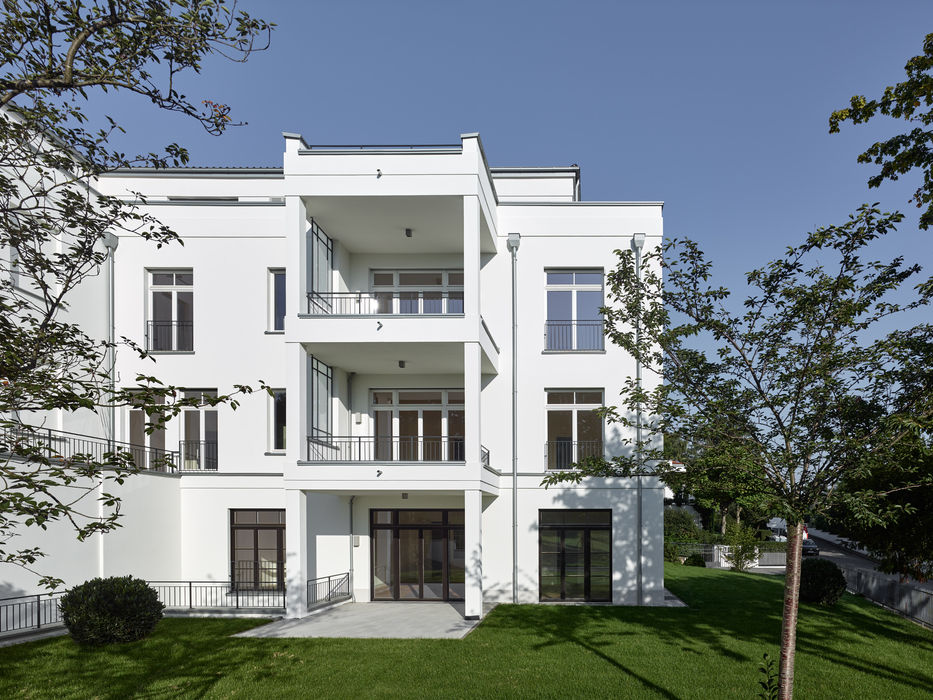 Auf dem Grundstück mit Hanglage wurde dieser Neubau eines hochwertigen Mehrfamilienhauses mit großzügigen Wohneinheiten gehobener Ausstattung und Tiefgarage errichtet. Das Erdgeschoss, welches sich aus dem Hang heraus entwickelt, bildet die Basis für zwei Obergeschosse und ein Staffelgeschoss. Aufgrund seiner Hanglage orientiert sich das Gebäude zur Straße und öffnet somit den Blick in Richtung des Tales sowie des seitlich anschließenden Naturschutzgebietes. Die aufwendig gestaltete Fassade gliedert den Baukörper und verleiht ihm eine klassische Eleganz.